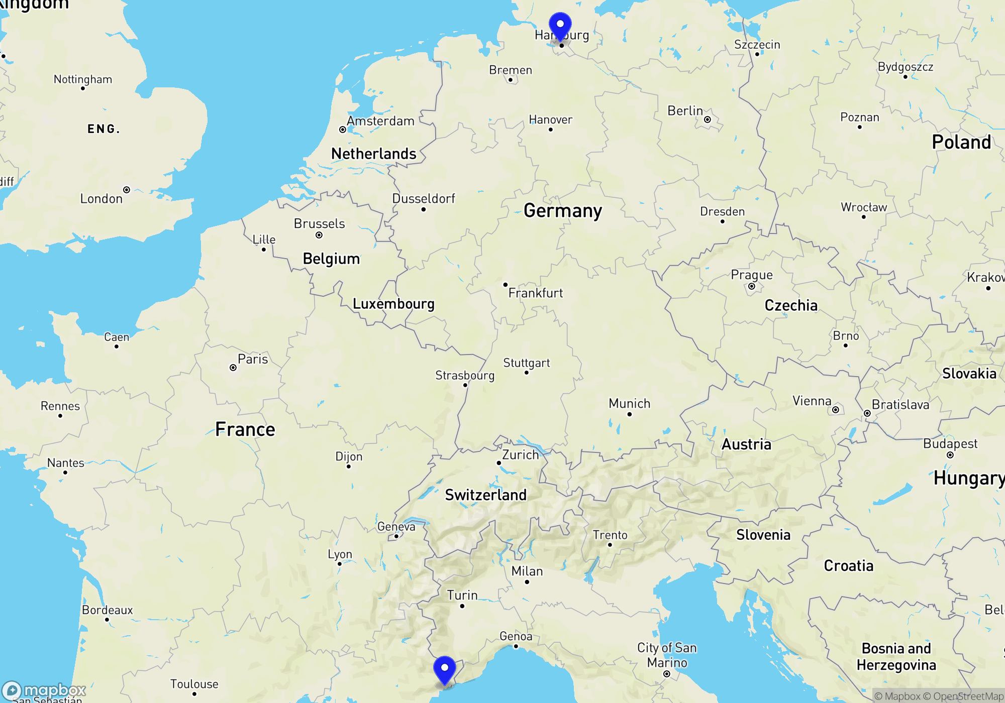 Hamburg to Nice by train